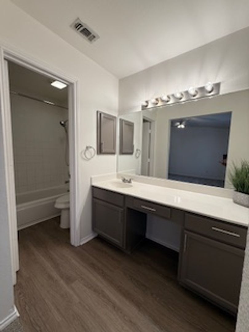 3 bedroom 2 1/2 bath townhome near Medical Center at Village at Rustic Park. A gated community. Home is freshly painted with new flooring. Newer stainless steal appliances. Home features double master bedroom upstairs and a 3rd bedroom downstairs. Home also features a fireplace in living room and large back patio. $450.00 non-refundable cleaning deposit. Pets negotiable with $400.00 pet deposit.